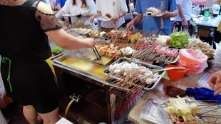 3、串串香: 串串香作为经典的地摊小吃之一,近年来依然火热不减,从食材的选择到调料的搭配,每一串都凝聚着匠人的心血和独特的技艺。