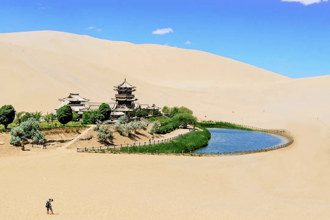 敦煌是丝绸之路上的璀璨明珠,拥有世界闻名的莫高窟、鸣沙山和月牙泉等景点,莫高窟是世界文化遗产,内有丰富的佛教艺术珍品;鸣沙山和月牙泉则是沙漠中的绿洲,风景独特,令人陶醉。