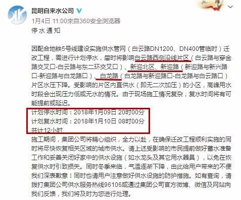 最新昆明停水通知,一、通知概述