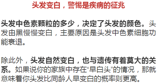 1、遗传因素:家族中有早发白发的历史,往往容易遗传给后代。