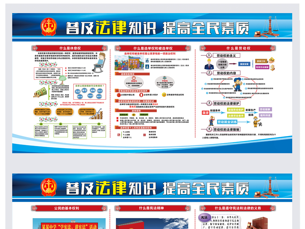本次法律知识宣传展板内容丰富,涵盖了多个法律领域,旨在让公众全面了解法律知识。以下是展板的主要内容概述: