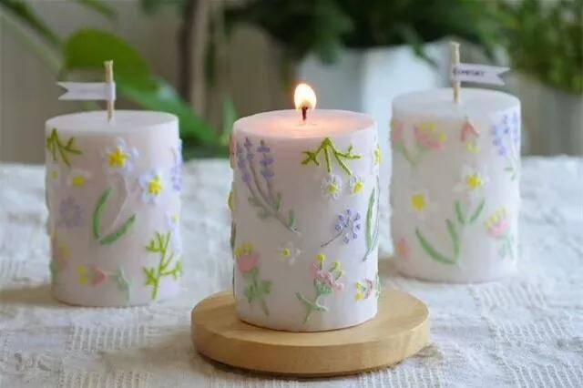 - 装饰元素:在蜡烛表面添加珠子、干花、丝带等装饰元素,增加视觉吸引力。