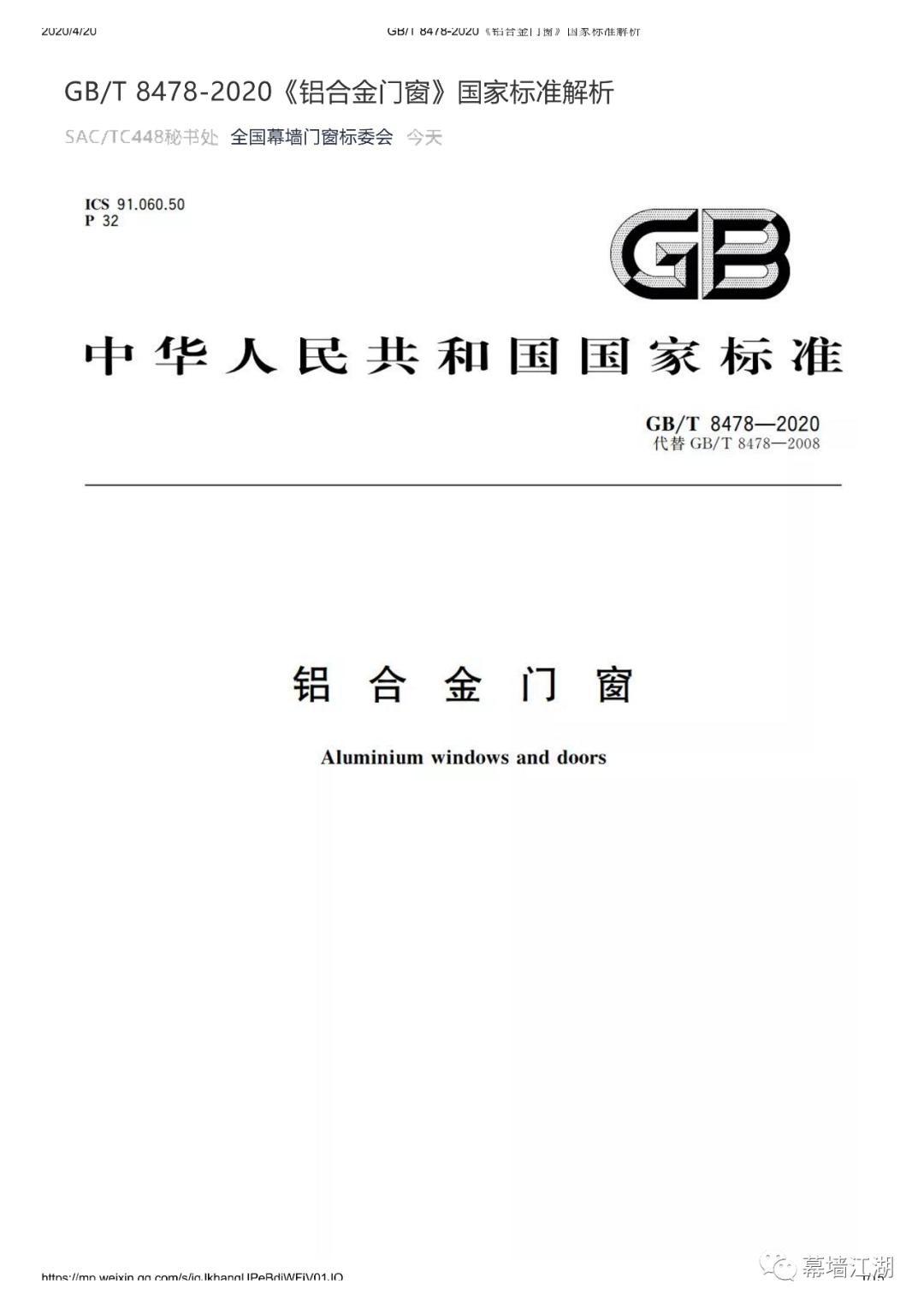 铝合金门窗GB8478规范概述