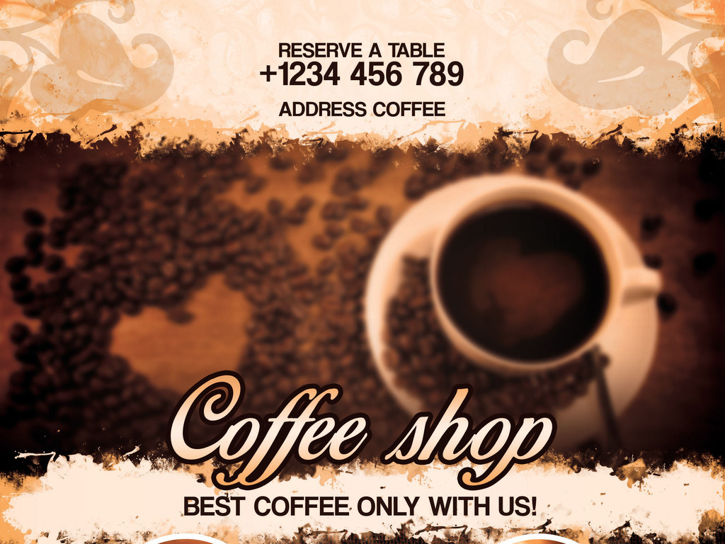 1. **咖啡豆图案背景**:海报以精美的咖啡豆图案作为背景,呈现出浓厚的咖啡文化氛围。咖啡豆的形状巧妙地融入了海报的边缘,使得整体视觉效果更加和谐。