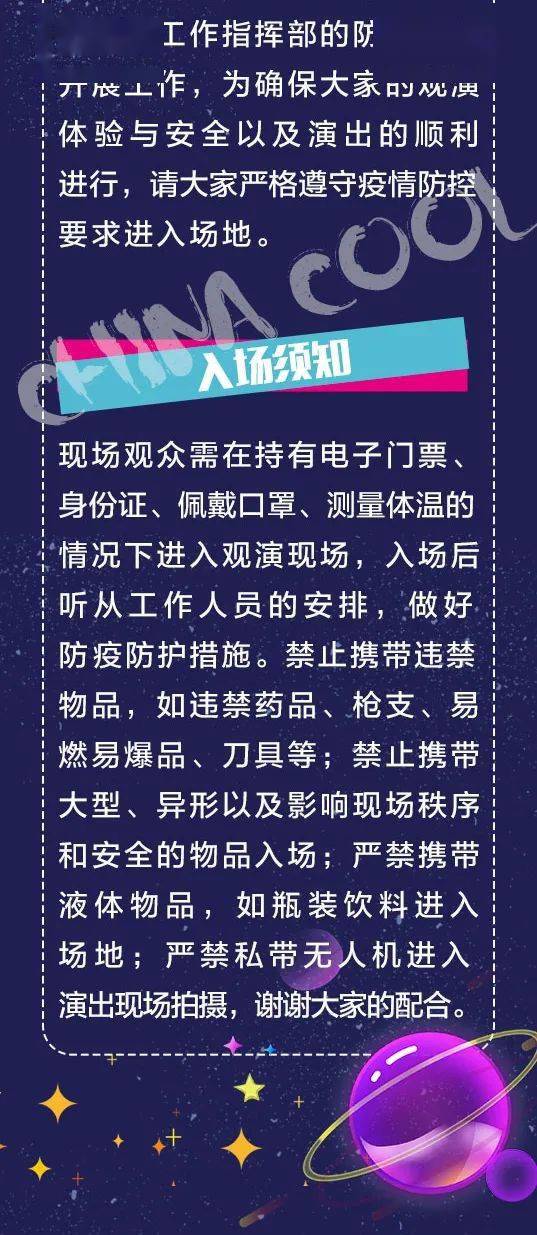 1、请观众提前到达现场,以免错过演出。