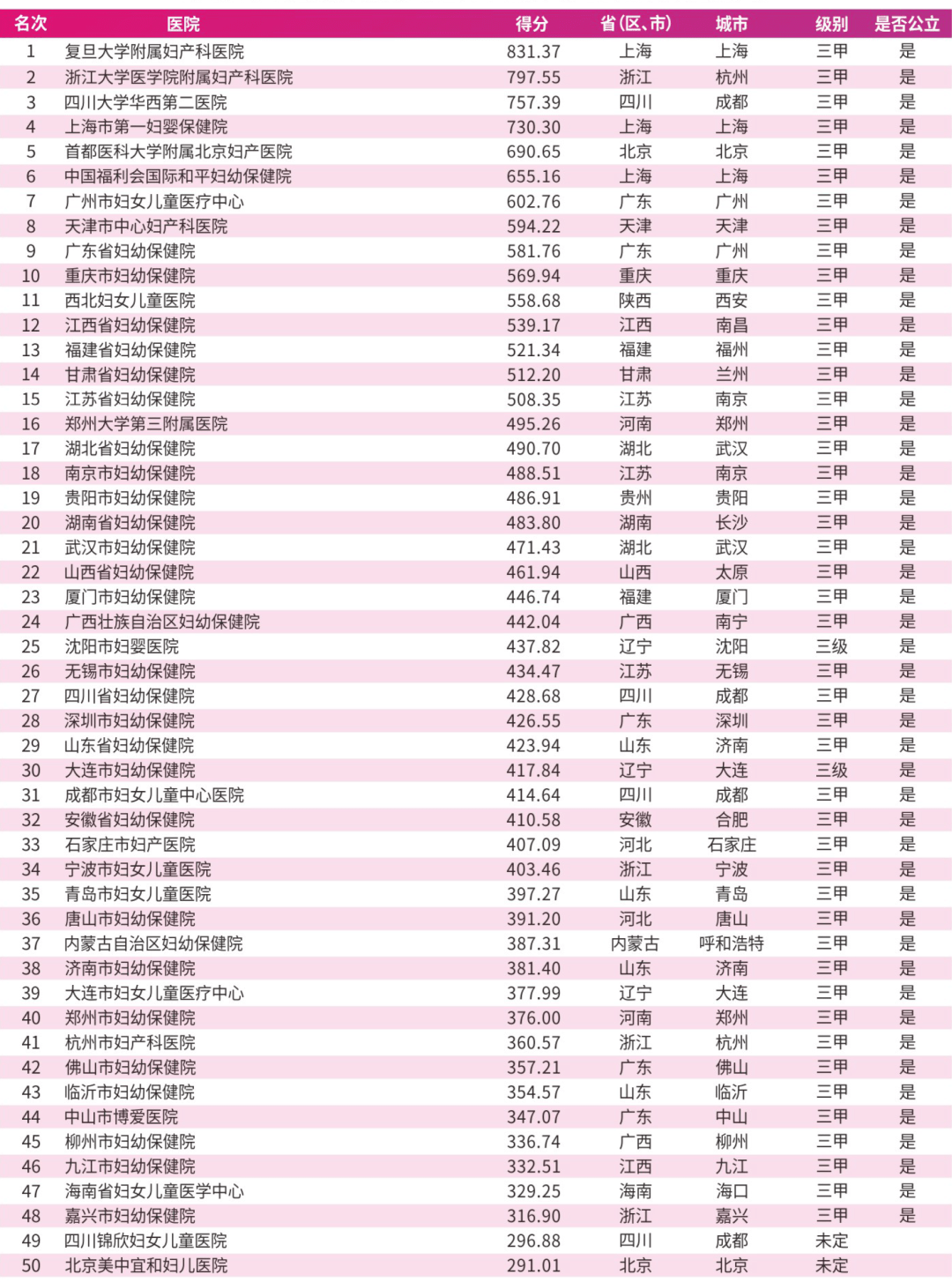 排名榜单概述