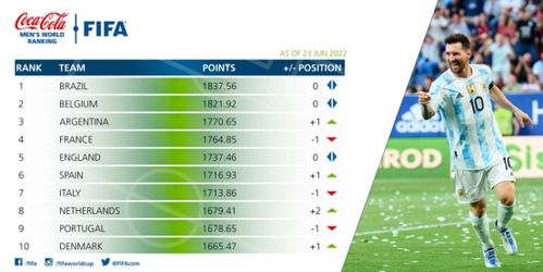 2、南美洲:巴西和阿根廷作为南美洲的代表性球队,一直都是足球世界的佼佼者,虽然近年来在排名上有所下滑,但在大赛中依然展现出强大的实力,他们的技术娴熟、配合默契和激情四溢的球风让人赞叹不已。